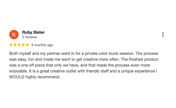 🎁 Your artwork stays in the studio to dry for a week — then it’s ready for pickup and admiration!